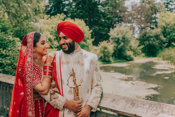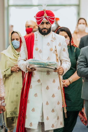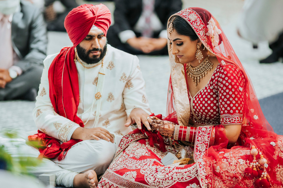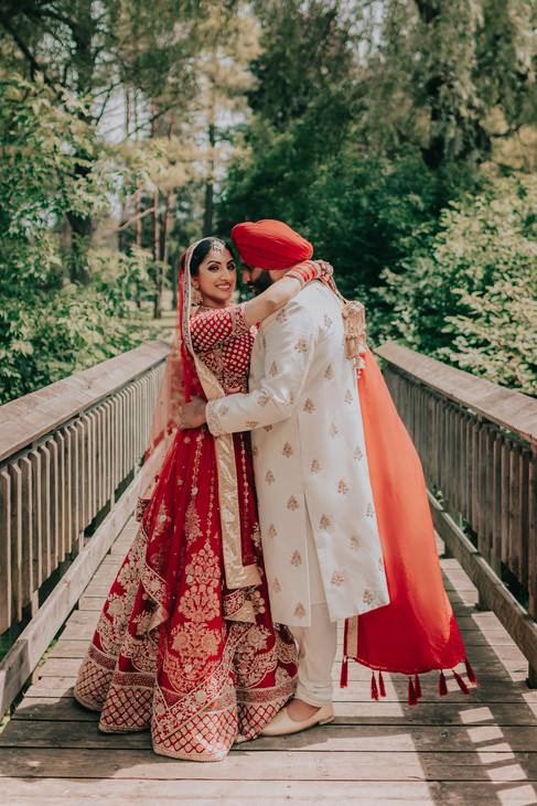 Love Prevails during the pandemic! Bhavna and Veer's wedding day showed us how we can still safely celebrate love and unity in our current circumstances. The wedding day portrayed grace and elegance with a pop of beautiful bridal red from The New Delhi Company against the regal white backdrop of Cambridge's Sikh Temple.