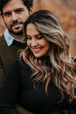 Virginia wanted a rustic, sun-kissed natural look to really accentuate her shoot. We decided to choose Toronto's Glen Stewart Ravine as the backdrop for their beautiful photos. Right as the sun set, the glow coming through the woods was the perfect start to the shoot. As we hiked down, the setting completely changed with all the leaves on the ground and a small stream running through the Ravine. Good thing Virginia had brought a few dresses to choose from. We ended up using up all her dresses with different backdrops to add variety to the shoot. Normally, with outfit changes, the shoot can take longer than expected. But having that chemistry with Virginia and Daniel, I knew exactly what they wanted and how to pose them. With the help of perfect natural lighting and 3 outfit changes, we flew through the entire shoot in just over an hour.